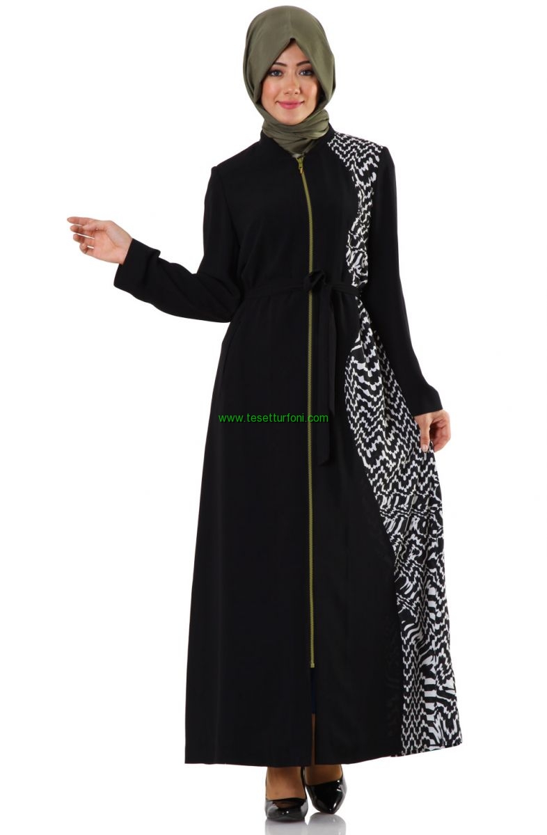 Tek tarafı desenli olan Nihan ferace çeşitlerinde siyah ve beyaz renk ikilisi kullanılmış. Feracenin tek kısmı siyahken diğer kısmı siyah ve beyaz desenden meydana geliyor. Farklı ferace çeşitlerinden faydalanmak isteyen tesettürlü kadınlar için son derece uygun. Nihan çift renkli feraceler ve yaldız biyeli feraceler sezonun en çok ilgi gören ferace çeşitleri araında bulunuyor. Nihan ferace modelleri arasında kot ferace çeşitleri de bulunuyor. Üstelik kot ferace çeşitlerinde yer alan işlemeli ayrıntılar feracelerin sportif görüntüsünü klasik bir görünüme taşıyor. Ön kısmı boydan boya taş detaylı olan ferace çeşitleri ise klasik günlerin tamamlayıcısı olan ferace çeşitlerini oluşturuyor.