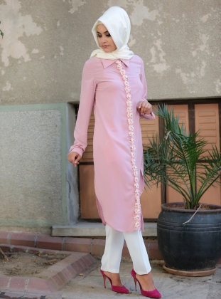 - Tunik seçeneklerine baktığımız zaman hem beyaz hem de pudra pembesi olan renklere bakıyoruz. Son derece rahat ve de spor duran modeller harika bir kumaş ile hazırlandıkları için aynı zamanda büyük bir rahatlık sağlıyorlar.