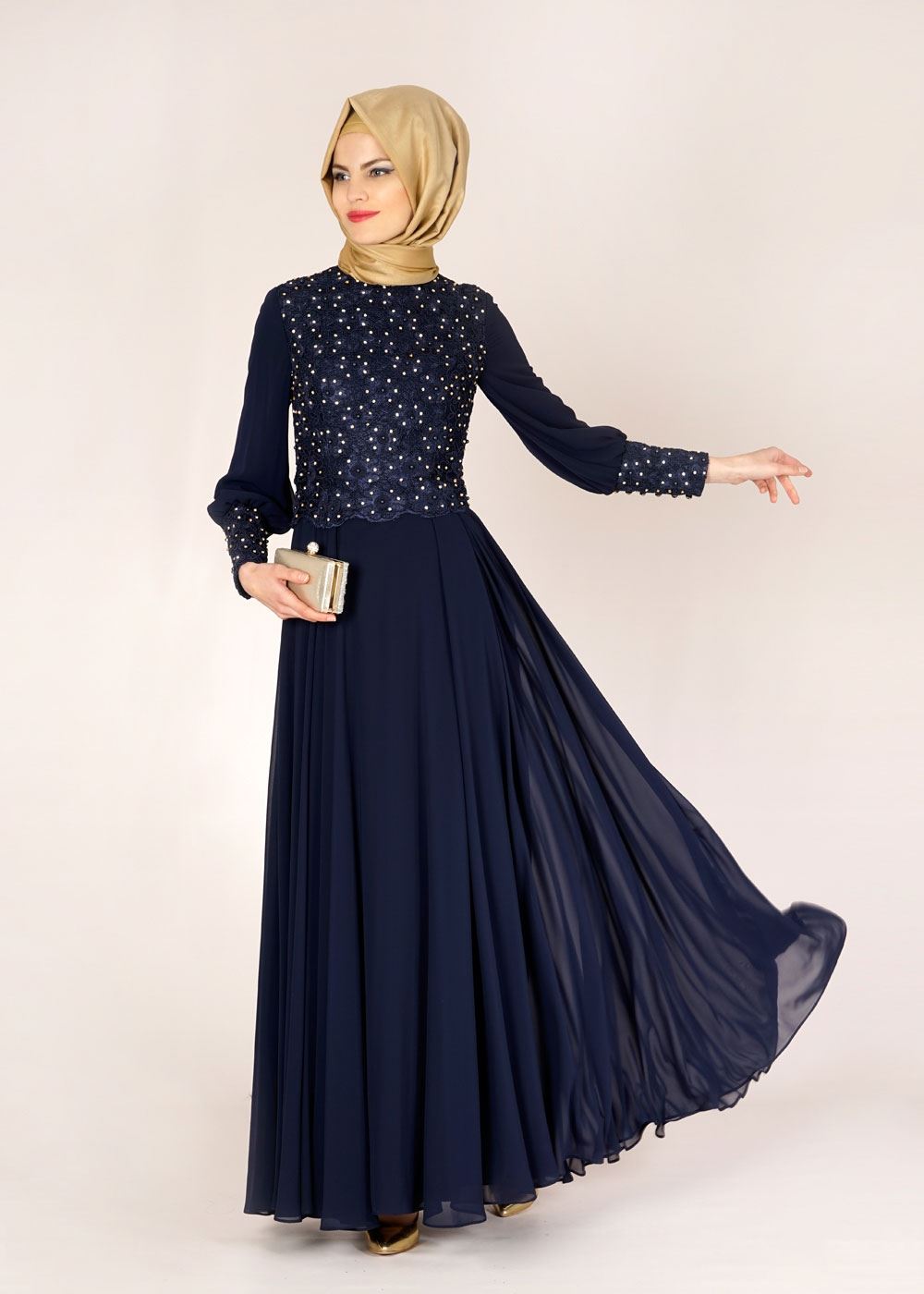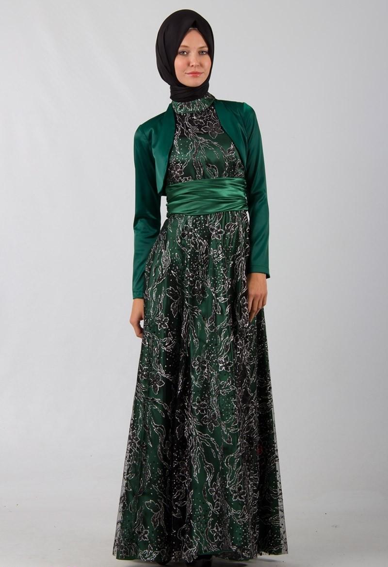 İşlemeleri tesettürlü abiye modeli