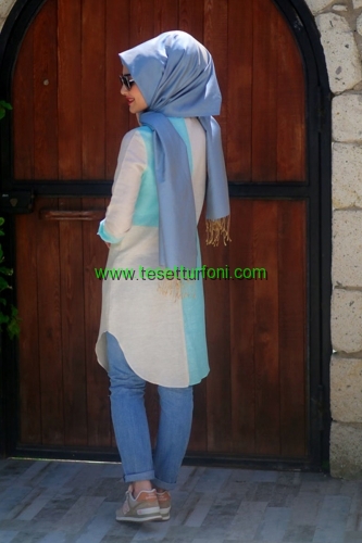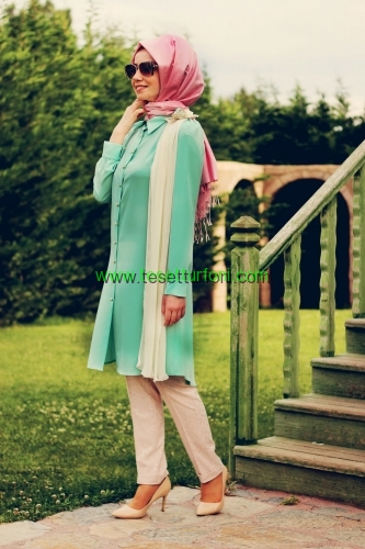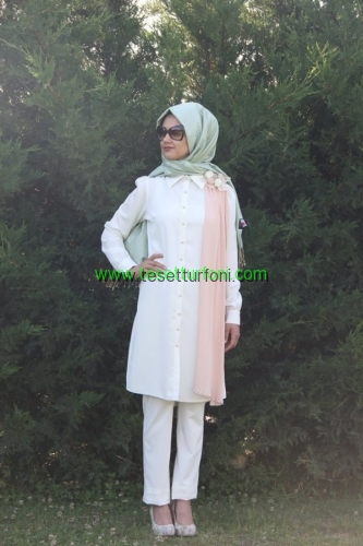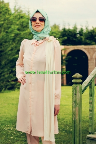 Penye ve hareketli kumaştan üretilen gömlek görünümlü, düğmeli tunik çeşitleri özellikle açık renk seven kadınların beğenisini toplayacak çeşitlerle bu sezon da vitrinlerde yerini alıyor. Tesettür giyimde şıklık kazandıracak ürünler diz üstü ve çift renk seçeneklerle beğeni toplamış durumda. Açık mavi- beyaz, pembe beyaz tonları, bej rengi, yavru ağzı tonları, yeşil renkte kullanıma sunuluyor. 36-42 beden arası temin edebileceğiniz ürünler bol kesim olduğu için etekle kullanımı önerilmiyor. Daha çok pantolonla birlikte ve benzer pastel tonlarda eşarpla kombin edilebilir.