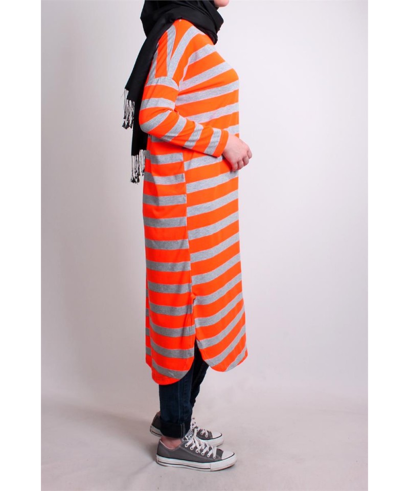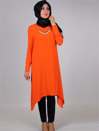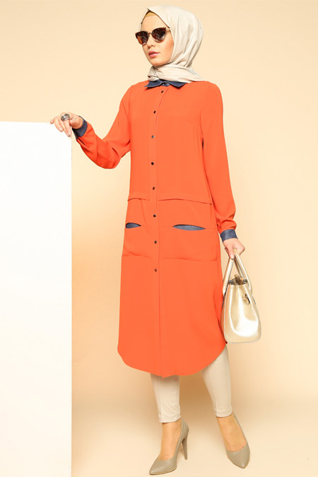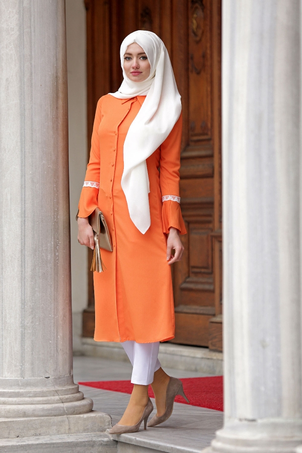Biz hanımlar, baharın kendini göstermesiyle içimizdeki güneş özlemini en güzel şekilde yansıtmak için fırsat kolluyoruz. Değişiklik her zaman ihtiyaç duyulan bir durum fakat, genellikle bahar ayları yaklaşırken çevremizde, evimizde, özellikle de kıyafetlerimizde değişiklik yapma isteğimiz artıyor. Neşeli renkleri hayatımıza sokup kışın soğuk günlerini geride bıraktığımızı ilan ediyoruz adeta. Cıvıl cıvıl renkler daha çok yer ediyor gardroplarda. Şimdi size, yazın en güzel renklerinden birini sunuyoruz. Tabi ki tesettürlü bayanların en çok kullandığı giyim unsuru, tuniklerle… Turuncu yaz mevsimini hatırlatmasının haricinde içerik olarak sıcaklık veren enerjik bir renk. Siyah, lacivert, ekru gibi sıklıkla kullandığımız renklerle sağladığı uyum sonucunda rahatlıkla her çeşit etek ya da pantolonla kombin kolaylığı sağlıyor. Turuncu tunik modelleri kot etek ya da pantolonla kullanıma da oldukça uygun. Birçok giyim markasının vitrinlerini süsleyen etek hırka tasarımlarının bir çoğunda turuncu tesettür kıyafetler ile karşılaşıyoruz. Modern tesettür tasarımlarında 2016 yaz tunik modelleri ışıltılı renklerle süslü. Galerimize göz atarak yapacağınız yaz alışverişini yönlendirebilir, hem günlük spor kıyafetlerinizi, hem klasik kombinlerinizi sıkılmadan bütünleyebilirsiniz.
